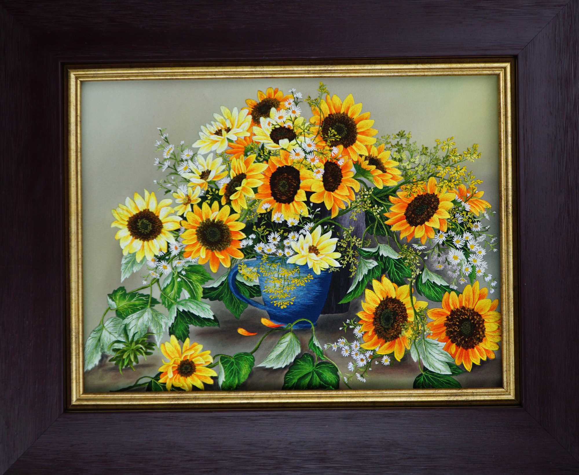 Một bức tranh kết hợp vẽ và thêu