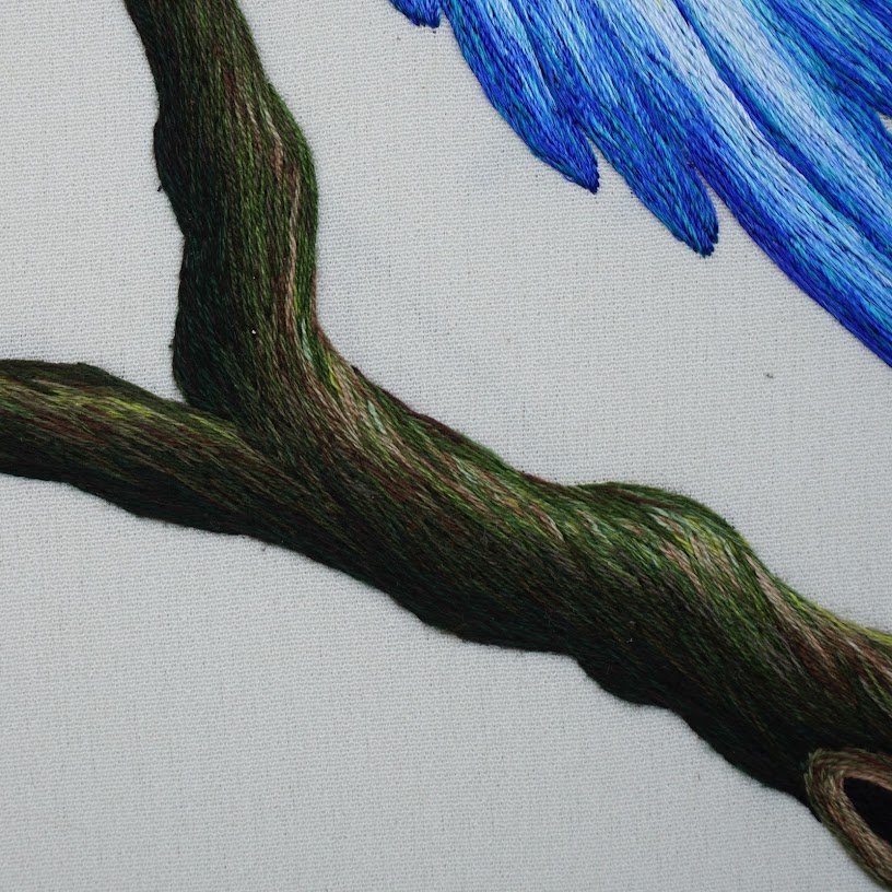 Tranh thêu tay Chú Vẹt Xanh – Màu sắc sống động cho không gian của bạn