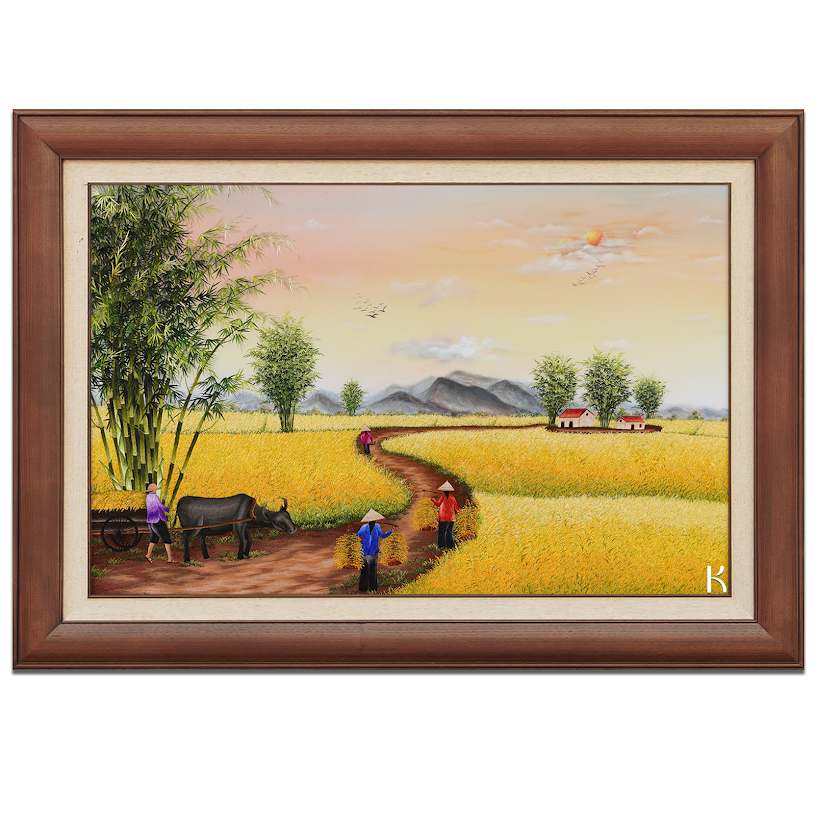 Về phong thủy, bức tranh này mang lại cảm giác an yên, sung túc, thích hợp với những ai mong muốn tìm kiếm sự bình an và may mắn. Tre vốn là biểu tượng của sự trường thọ và bền vững, lúa chín thể hiện sự sung túc đủ đầy, còn nông dân chăm chỉ biểu trưng cho tinh thần nỗ lực không ngừng. Tất cả hòa quyện thành một bức tranh giàu lòng nhân ái và ngập tràn hy vọng.