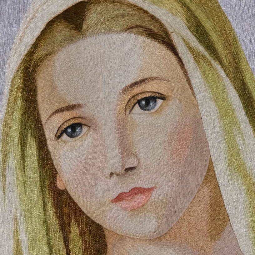 Trong không gian nghệ thuật, nơi từng chi tiết đều gắn kết, bức tranh thêu tay Đức Mẹ là một tác phẩm thật đặc biệt, tựa như một cây cầu nối giữa truyền thống thêu tay và vẻ đẹp hội họa. Đây không chỉ đơn thuần là một tác phẩm thủ công mà còn là một biểu tượng của sự kết hợp giữa kỹ thuật thêu tinh tế và cảm xúc của hội họa phương Tây cổ điển. Vẻ đẹp thăng hoa từ từng đường kim mũi chỉ đem lại cảm giác thân thuộc mà cũng đầy mới lạ.