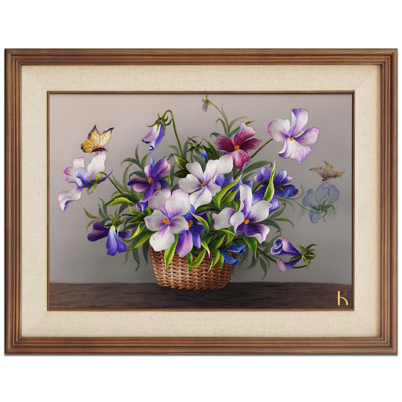 Từng chi tiết nhỏ trên bức tranh đều kể lại một câu chuyện riêng. Những bông hoa khoe sắc tự nhiên như đang rung rinh trước cơn gió nhẹ, bướm vàng bay trong không trung như tìm kiếm những đoá hoa thơm ngát. Không khó để cảm nhận được hơi thở mùa xuân, sự dịu dàng của thiên nhiên và niềm vui bất tận từ bức tranh này. Thời gian như ngừng trôi khi bạn chiêm ngưỡng vẻ đẹp thanh thoát của nó.