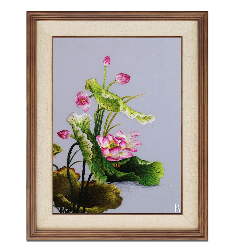 Bức tranh thêu tay hoa sen này đem lại giá trị vô cùng đặc biệt bởi cách thể hiện sáng tạo, nơi mà từng cánh hoa, từng đường nét được chăm chút một cách tỷ mỷ. Sức hút của bức tranh không chỉ nằm ở kỹ thuật thêu tay điêu luyện mà còn ở khả năng truyền tải những cảm xúc tinh tế, sâu lắng. Một bức tranh thêu tay không chỉ là một tác phẩm nghệ thuật mà còn là một quá trình tạo ra giá trị qua bàn tay khéo léo của nghệ nhân. Điều này giúp người sở hữu không chỉ có một vật phẩm trang trí đẹp mắt mà còn là một tác phẩm nghệ thuật độc đáo và quý giá.